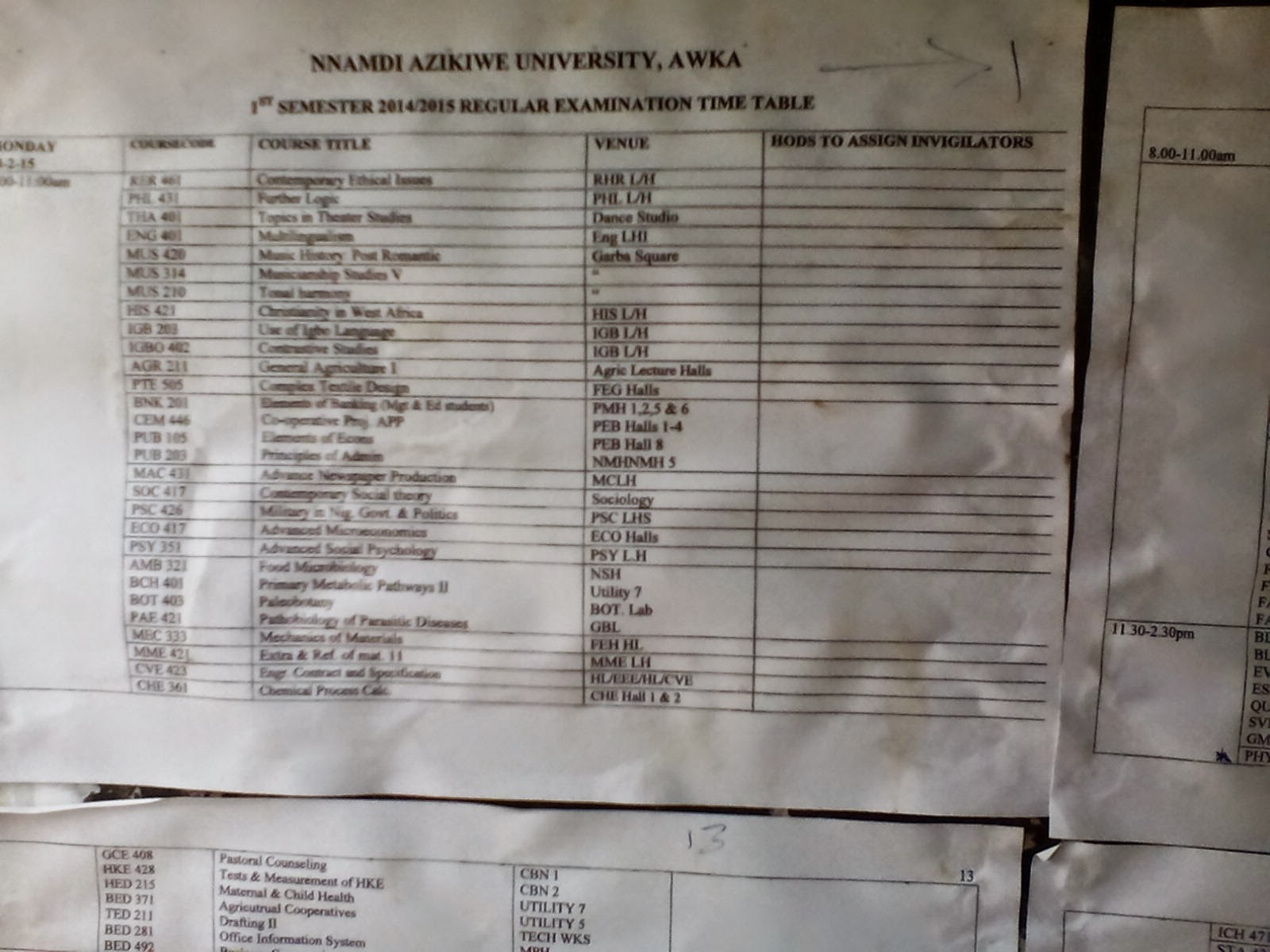 The time table for the 2014/2015 academic session has been pasted at Engineering bus stand. Controversy surrounding the feasibility of the table and the upcoming election clashing together has been on the rage.